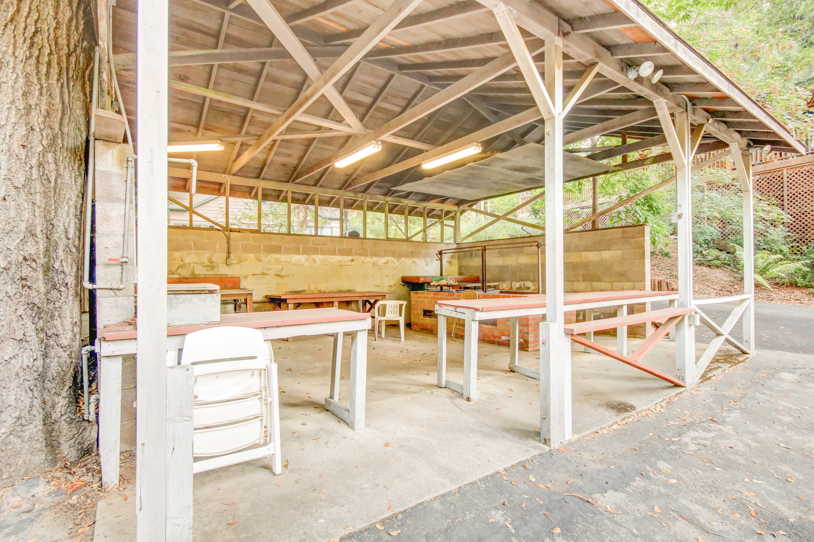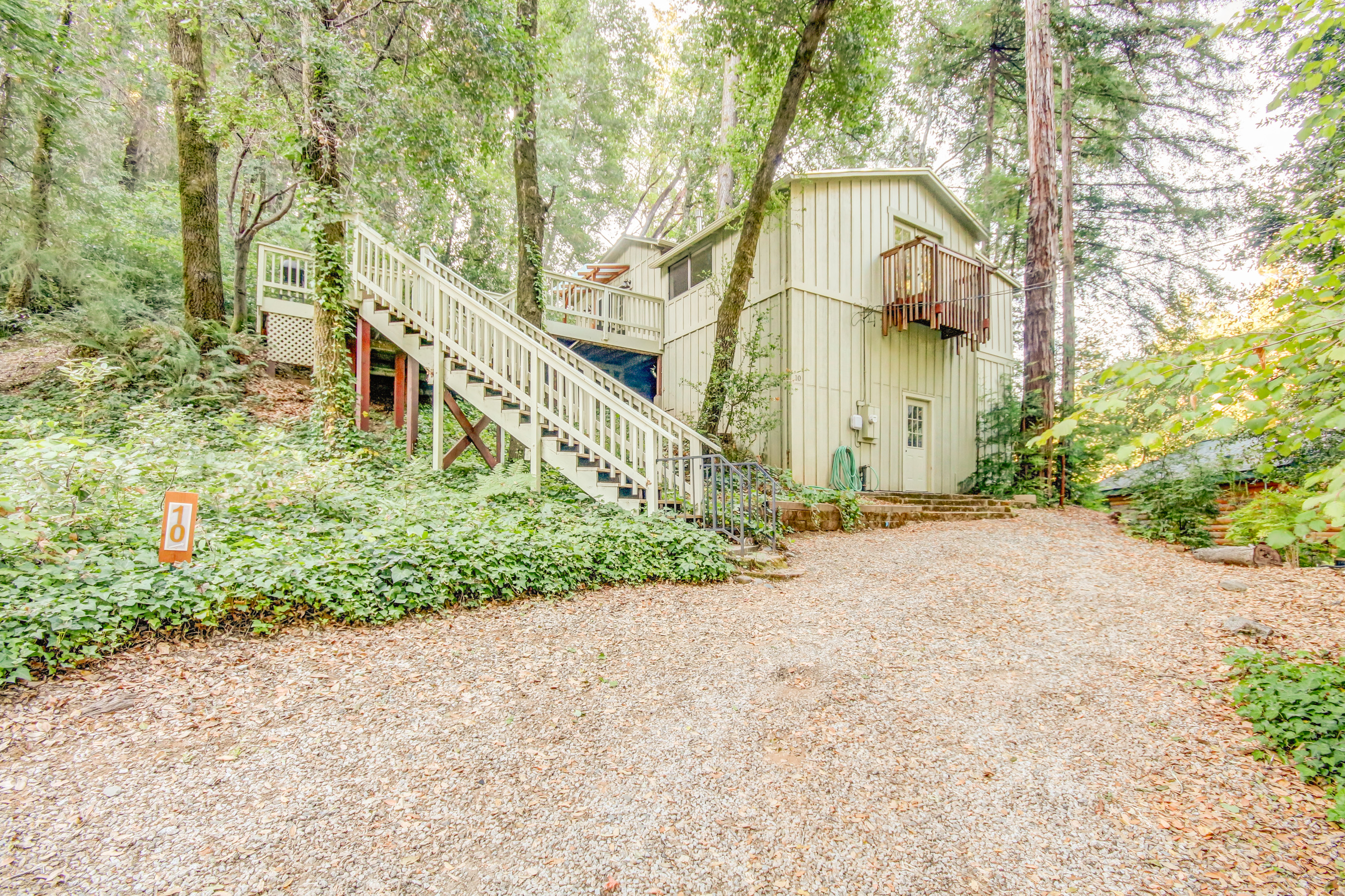 Just a 10 minute stroll from picturesque small town of Boulder Creek, the former Elk Club site is now the Bear Creek Stock Co-Op: 24 homes that share 12 acres with a clubhouse (see picture with furniture & exercise equipment), BBQ area & two trails to creeks & beaches.   This is ideal for a permanent residence or a vacation cabin.
