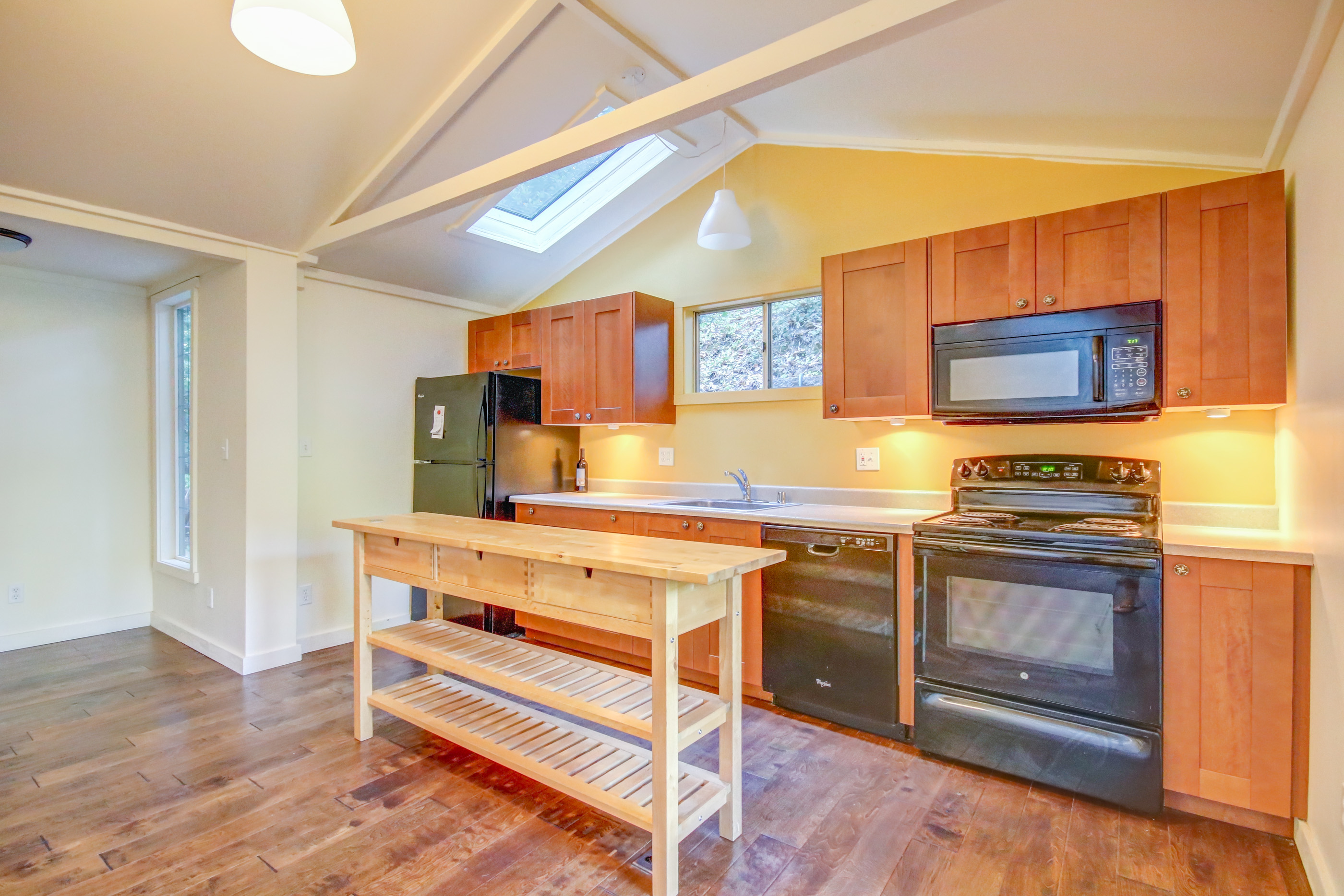 Graciously remodeled home features views of trees and a park like setting. Enjoy newer appliances, hardwood flooring, skylights, fixtures, roof,  central forced air gas heater, updated plumbing & electrical. Sitting high above the street affords a wonderful sense of privacy: it’s like living in a deluxe tree house.